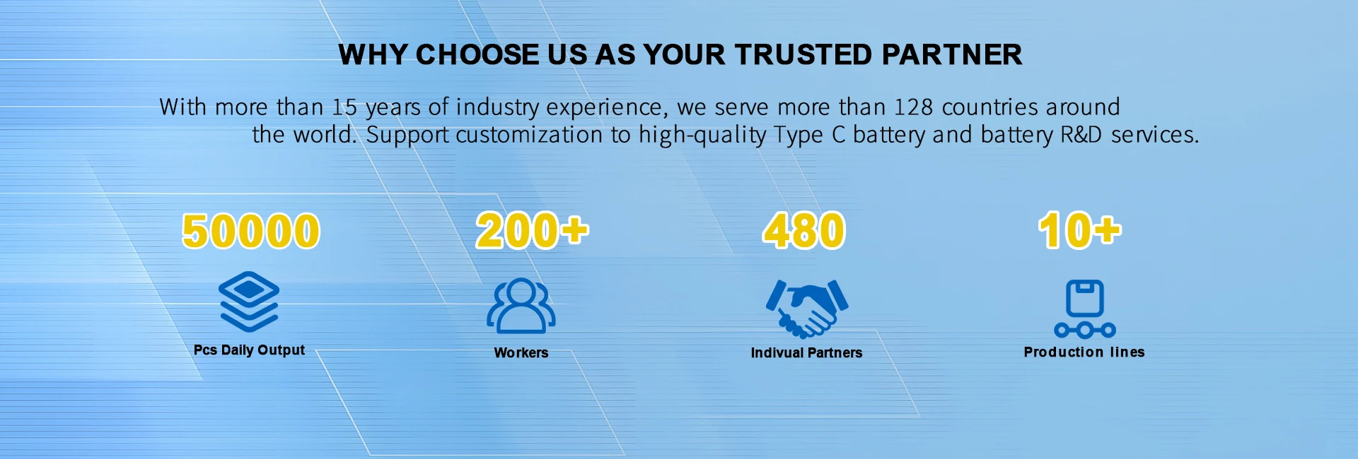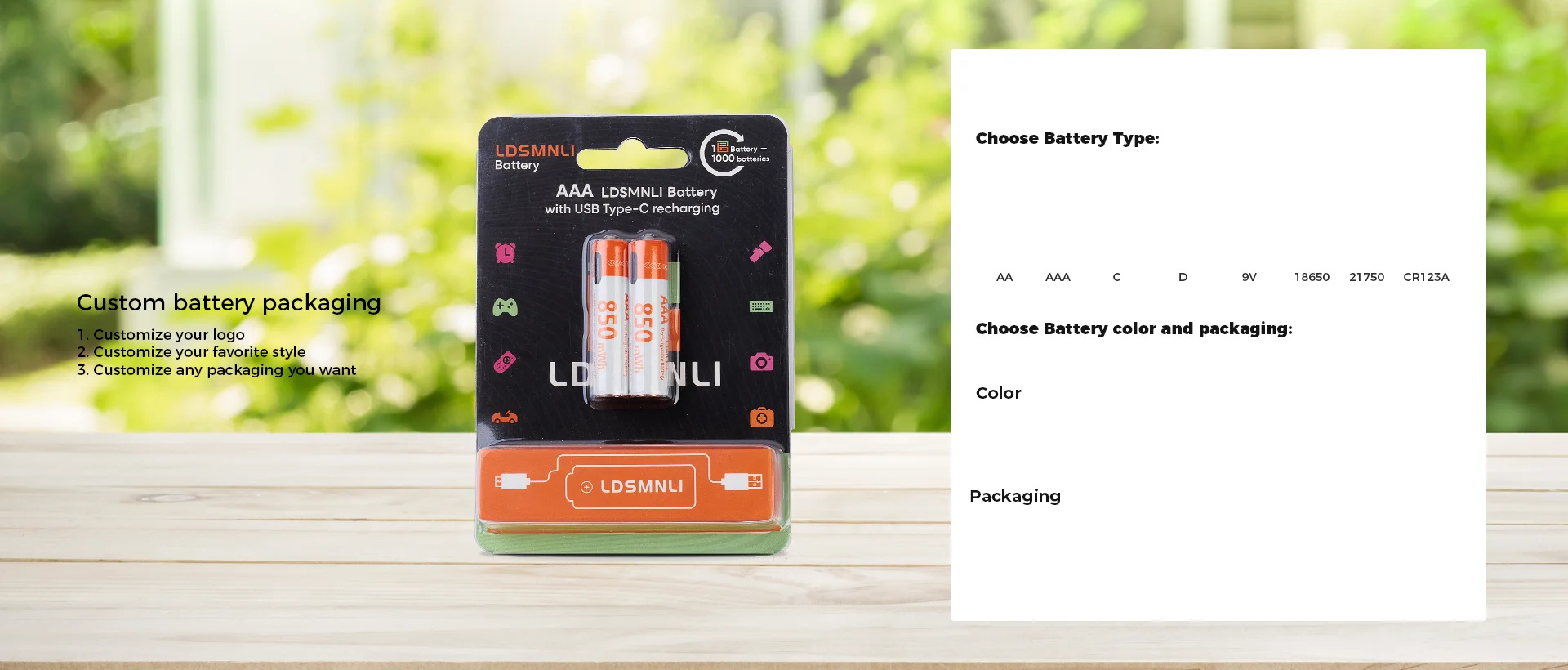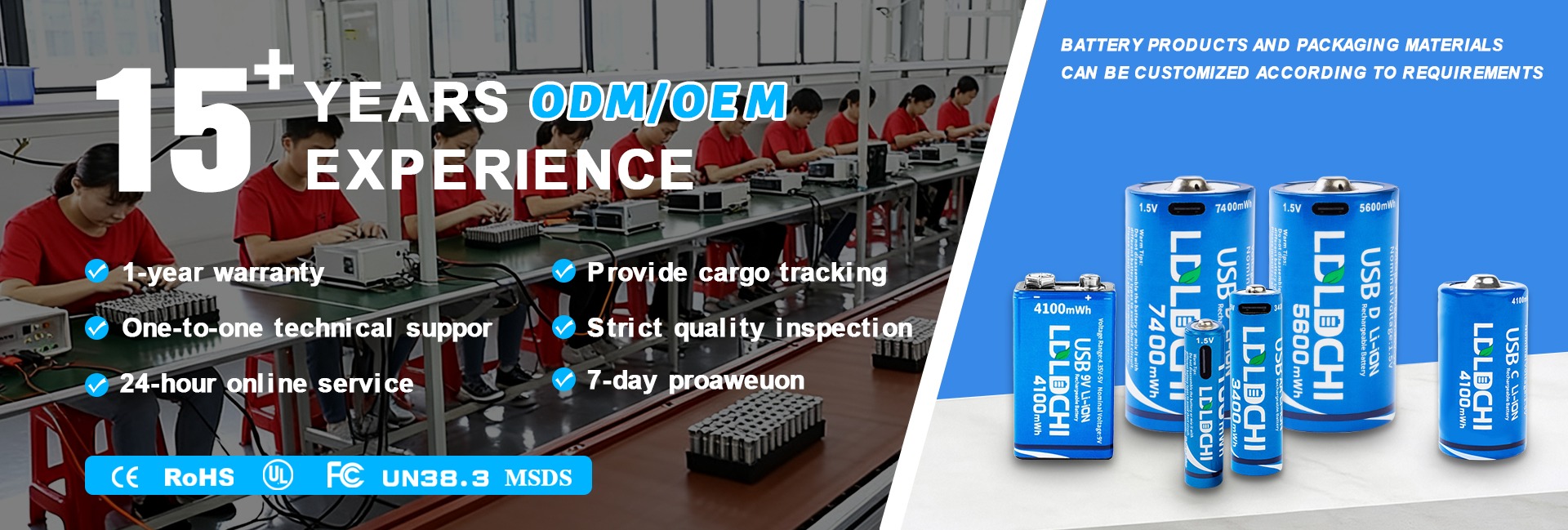 主な製品:充電式リチウム電池、充電器